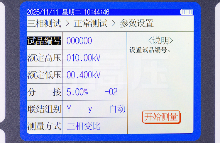 - 具有盲測功能,即在不知道高低壓聯(lián)結(jié)方式時進行變比、組別測試